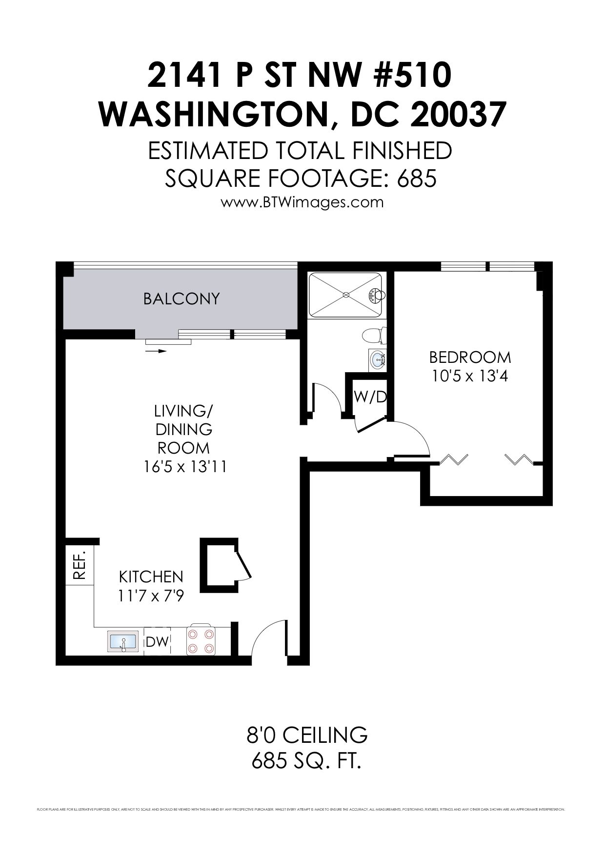 This well appointed one bedroom condo has all of the must haves on your list including in unit washer and dryer and an unbeatable location less than 2 blocks to Dupont Circle and metro. The modern L shaped kitchen is open to the living space and boasts wood cabinetry, stainless steel appliances, and spacious granite countertops. Kitchen appliances include a built in microwave, stainless steel GE refrigerator, electric stove/oven, and dishwasher. The kitchen opens to the spacious living room and dining area with space to dine and rewind at the end of the day. Floor to ceiling windows allow light to stream into the living room and a sliding glass door leads out onto the large private balcony. The sizeable bedroom comfortably allows for a king or queen bed and the extra wide closet spanning the width of the room features custom built-ins. The recently renovated bathroom features a large tiled walk in shower with a frameless glass shower door. This unit is move-in ready with low maintenance hardwood floors throughout. A private storage unit also conveys with the sale of the condo.