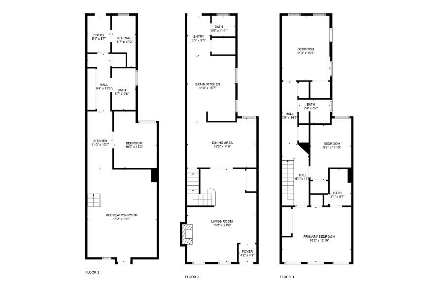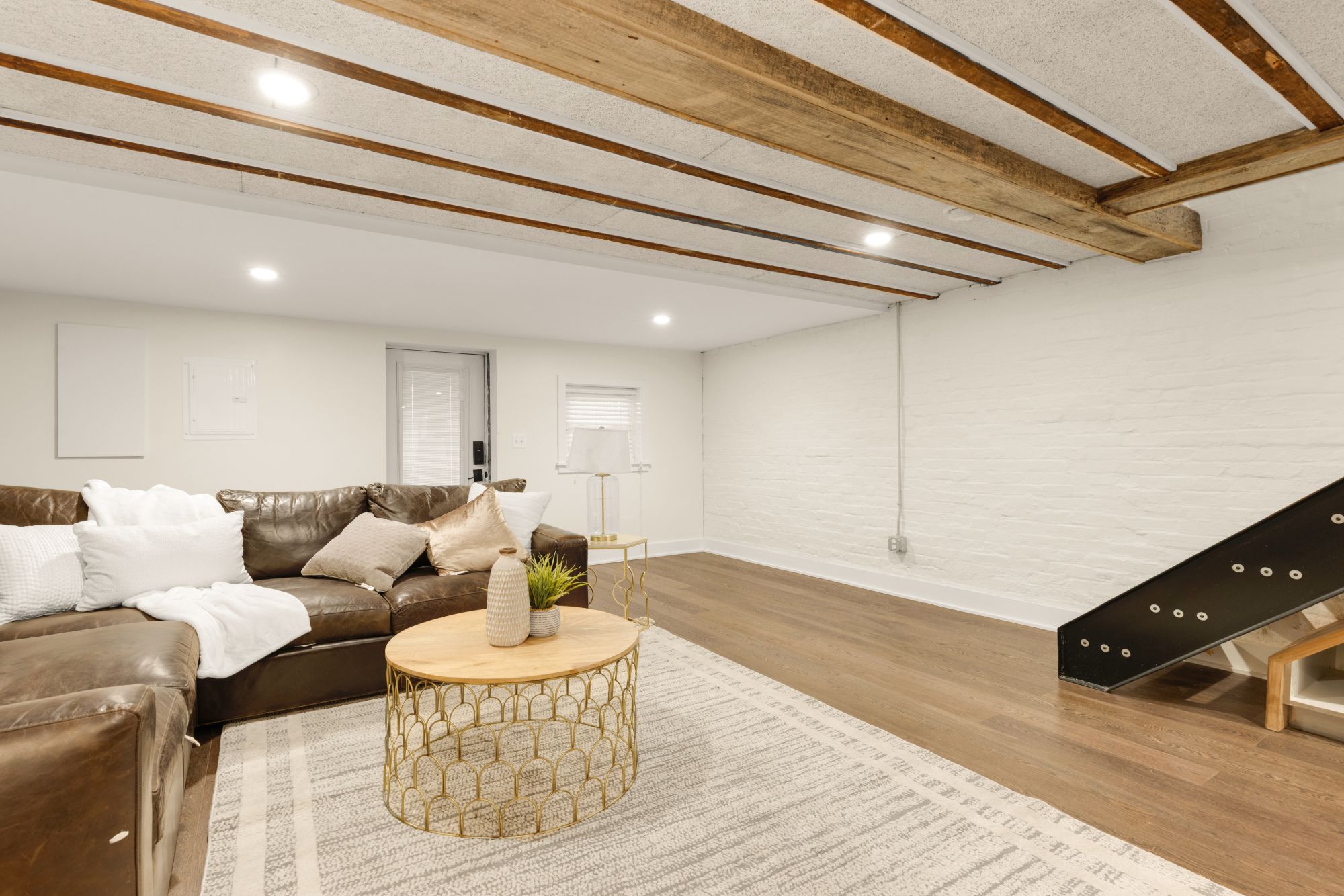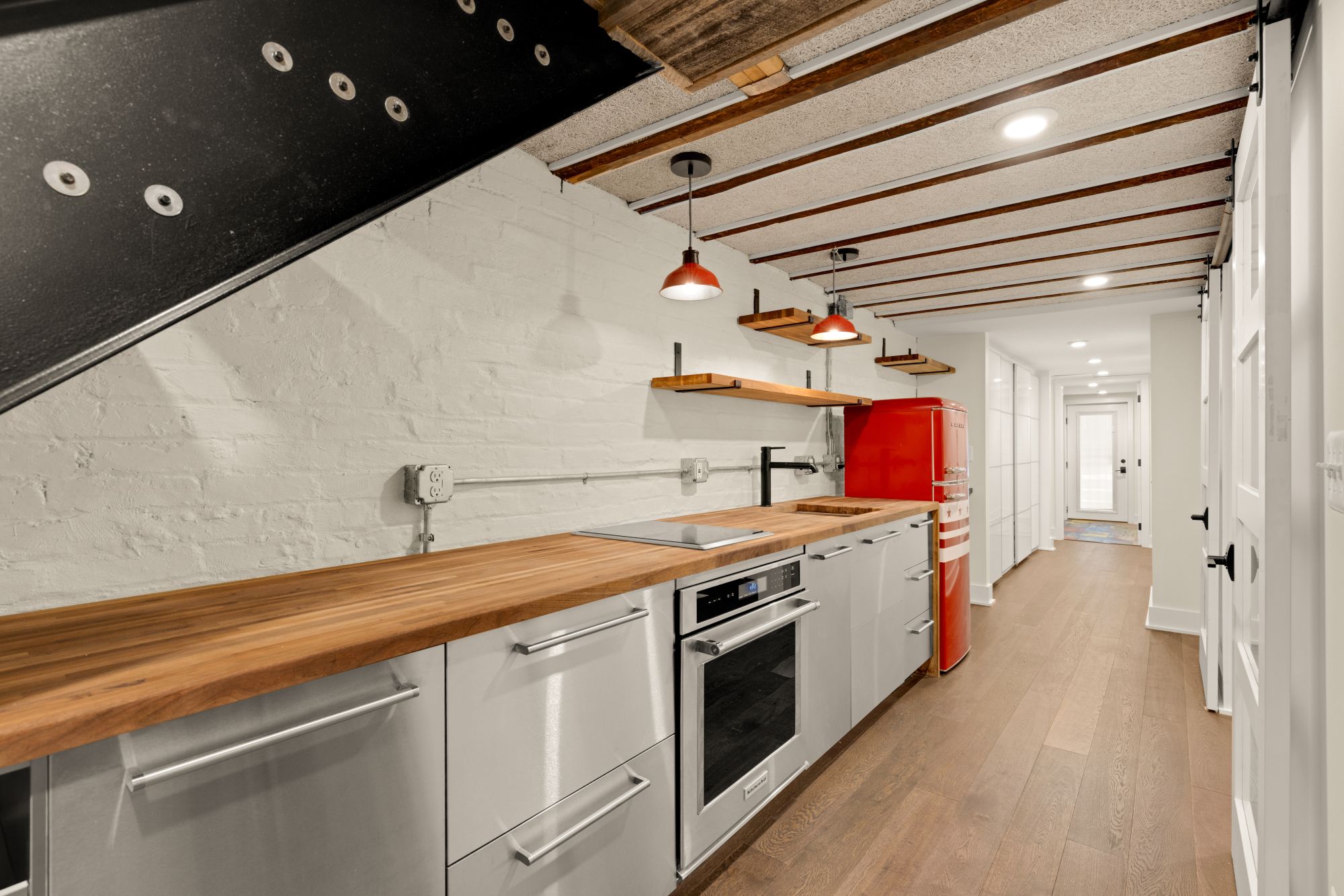 Upstairs, three true bedrooms and two full baths offer real breathing room. The primary suite has a clean, modern en suite with floor-to-ceiling tile and a spacious vanity. The front bedroom captures golden hour light and street views, while the back bedroom faces east for morning sun. Downstairs, a fully finished lower level adds flexibility: exposed brick, a full kitchenette, private entrance, and its own bed and bath make it ideal for guests, in-laws, or passive income. The seller is also willing to provide plans for a raised deck above the rear parking, modeled after the neighboring property, to create even more outdoor living space.